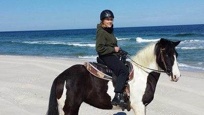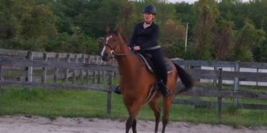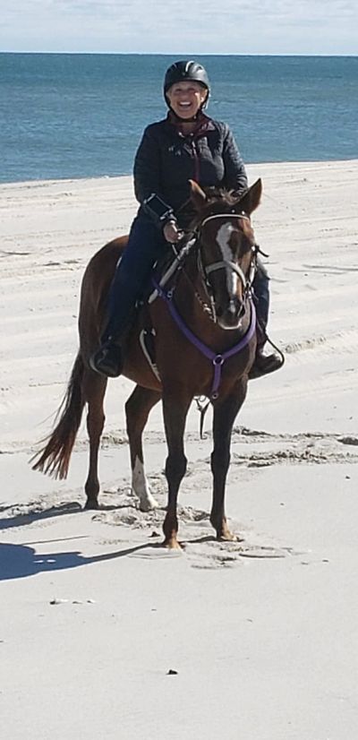 Three years ago, due to unfortunate circumstances, I had to find a new riding instructor. I found Regina Ennis and began riding under her tutelage. It was most fortunate for me. She has helped me in so many ways. She is an excellent encouraging teacher and has helped my riding both technically and mentally. My confidence has grown and I’ve been able to enjoy lifetime memories like challenging trail rides, beach rides and even a ride and canter in the snow. Regina is kind and giving and I’m proud to have her as a teacher and friend.